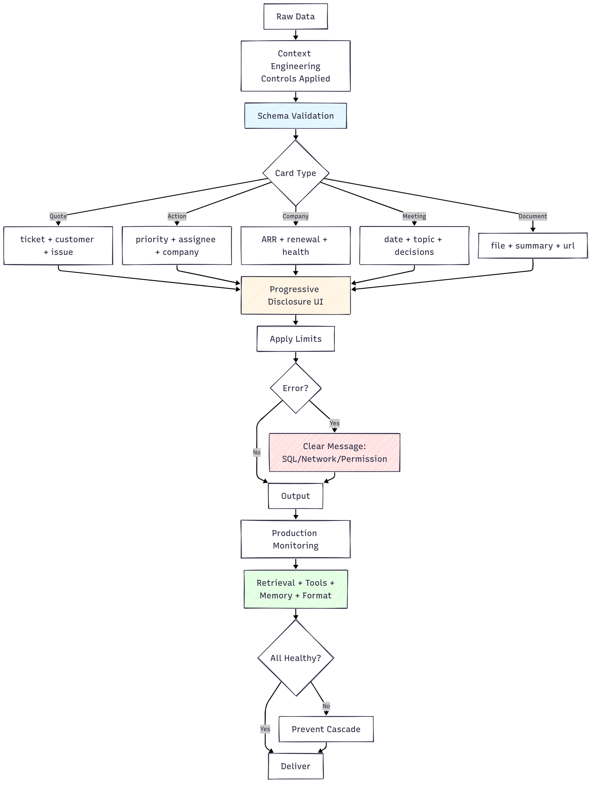 Context Engineering isn’t about giving AI more information. It's about building reliable, production-grade systems. This insight allowed us to move beyond prompt engineering to a robust architecture that handles messy real-world data, unpredictable users, cost constraints, and security requirements.